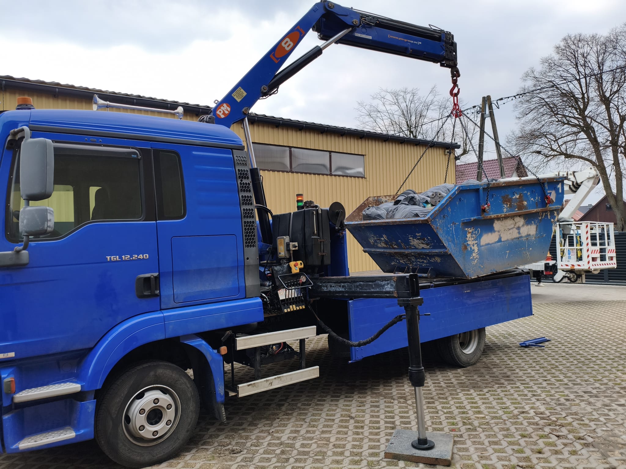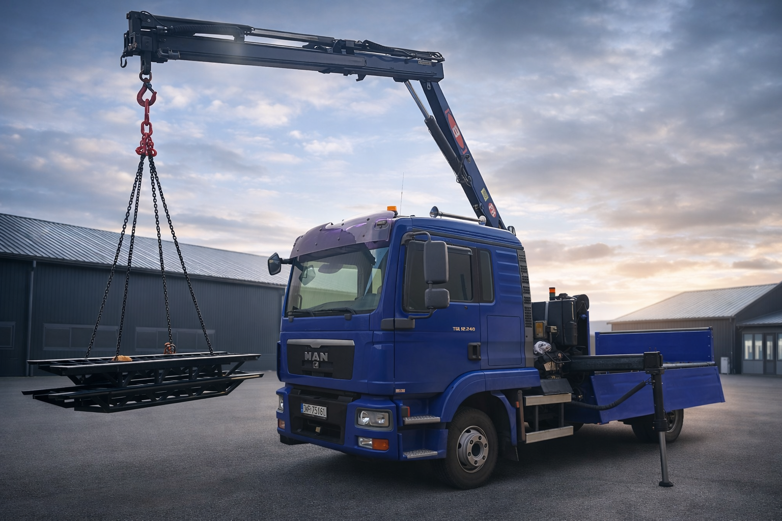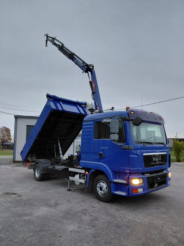 Dysponujemy samochodem Man TGL o ładowności do 5,5 t, wyposażonym w HDS o udźwigu 4,25 t, co pozwala na sprawny załadunek i rozładunek bez konieczności użycia dodatkowego sprzętu.